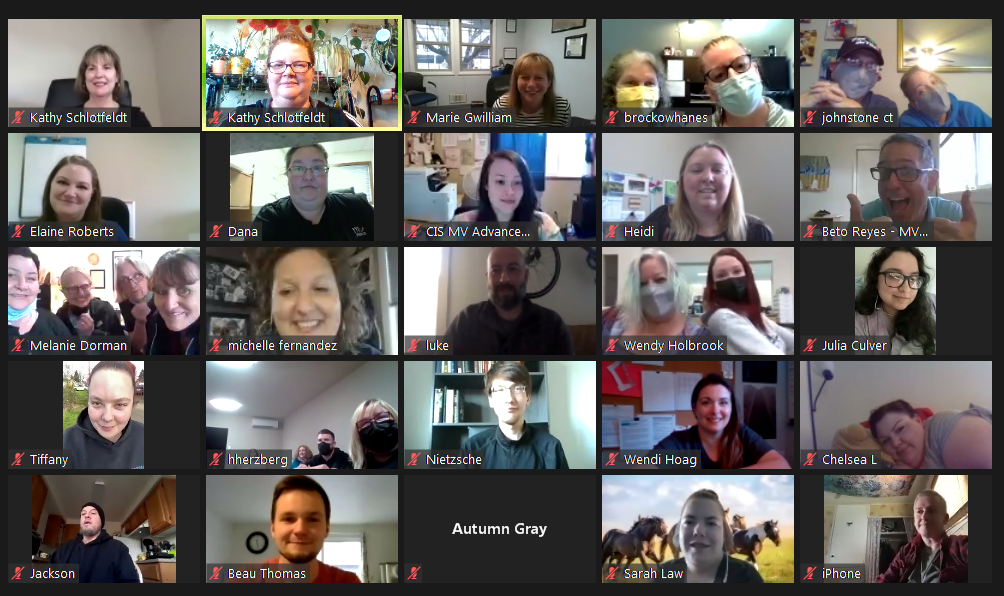 Please note that this is not our whole team. Some of our team was working, and other joined without their cameras on. But we know everyone was with us in spirit! And we look forward to the day we can all be in the same room together again.